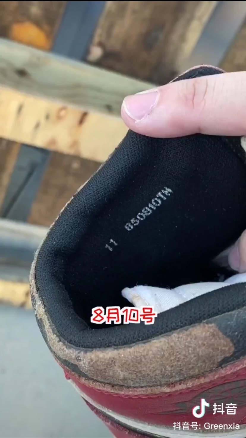 鞋帮内编号,标记着 8 月 10 日,是一双真真正正的有个 35 岁大龄的 OG 球鞋。