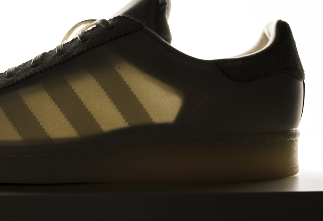 透明的「西瓜头」就是他特别提出的想法,麂皮的独特质感则来自 Campus 鞋款。