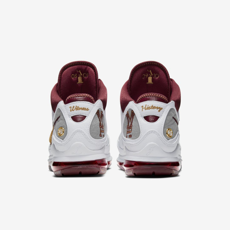 鞋跟内侧印有 “MVP” 徽标,外侧印有詹姆斯个人 Logo,同时后跟上则分别呈现 “Witness” 与 “History” 字样。