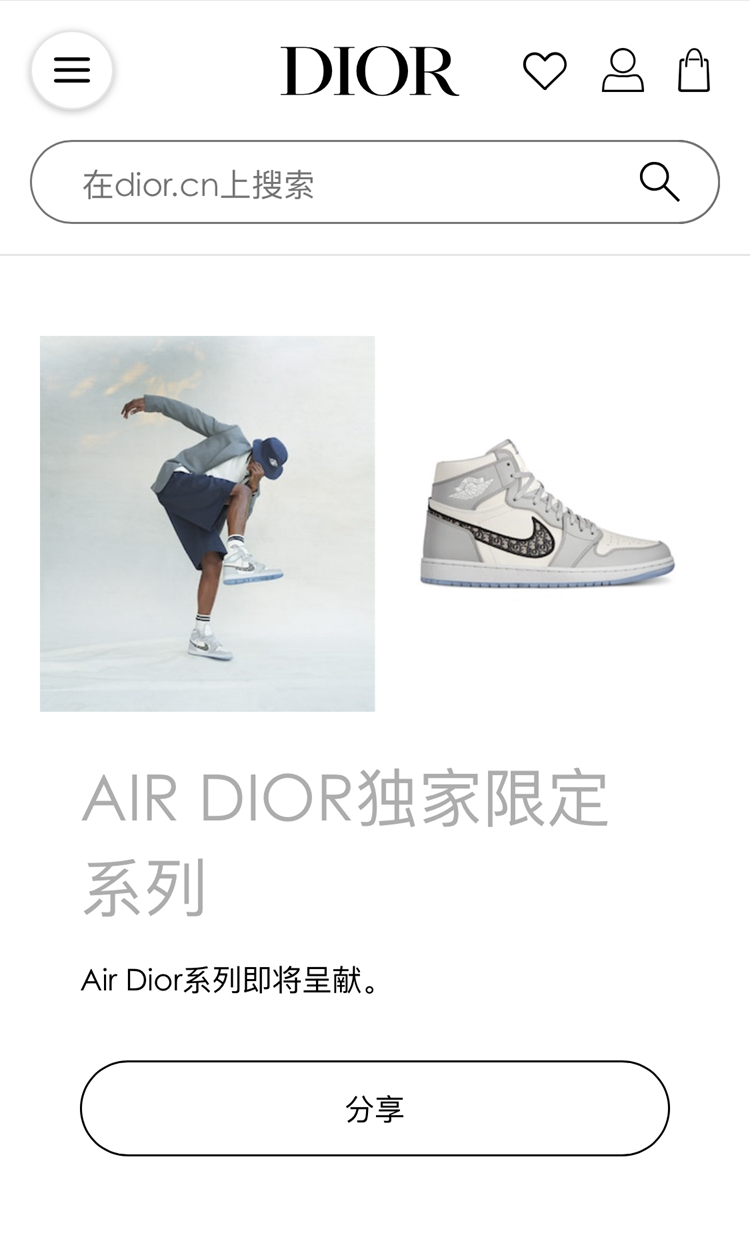 传闻此次国内 Air Dior 系列联名发售将会通过微信抽签的形式发售,所以还没有绑定会员的小伙伴可要抓紧时间了!