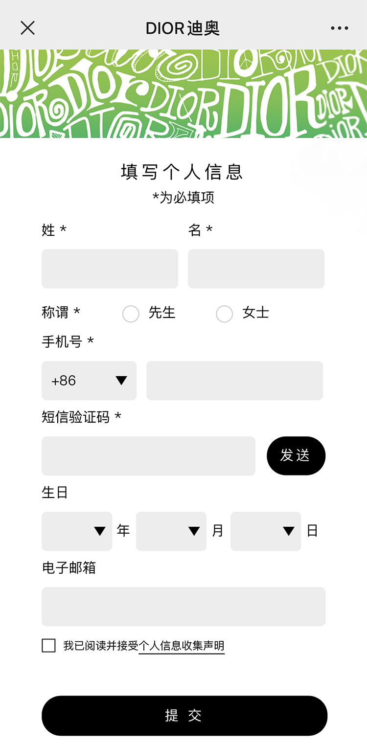 扫描关注即可看到 “AIR DIOR 独家限定系列” 字样,紧接着下方的 “即刻绑定” 点击之后即刻注册绑定成为 Dior 会员。