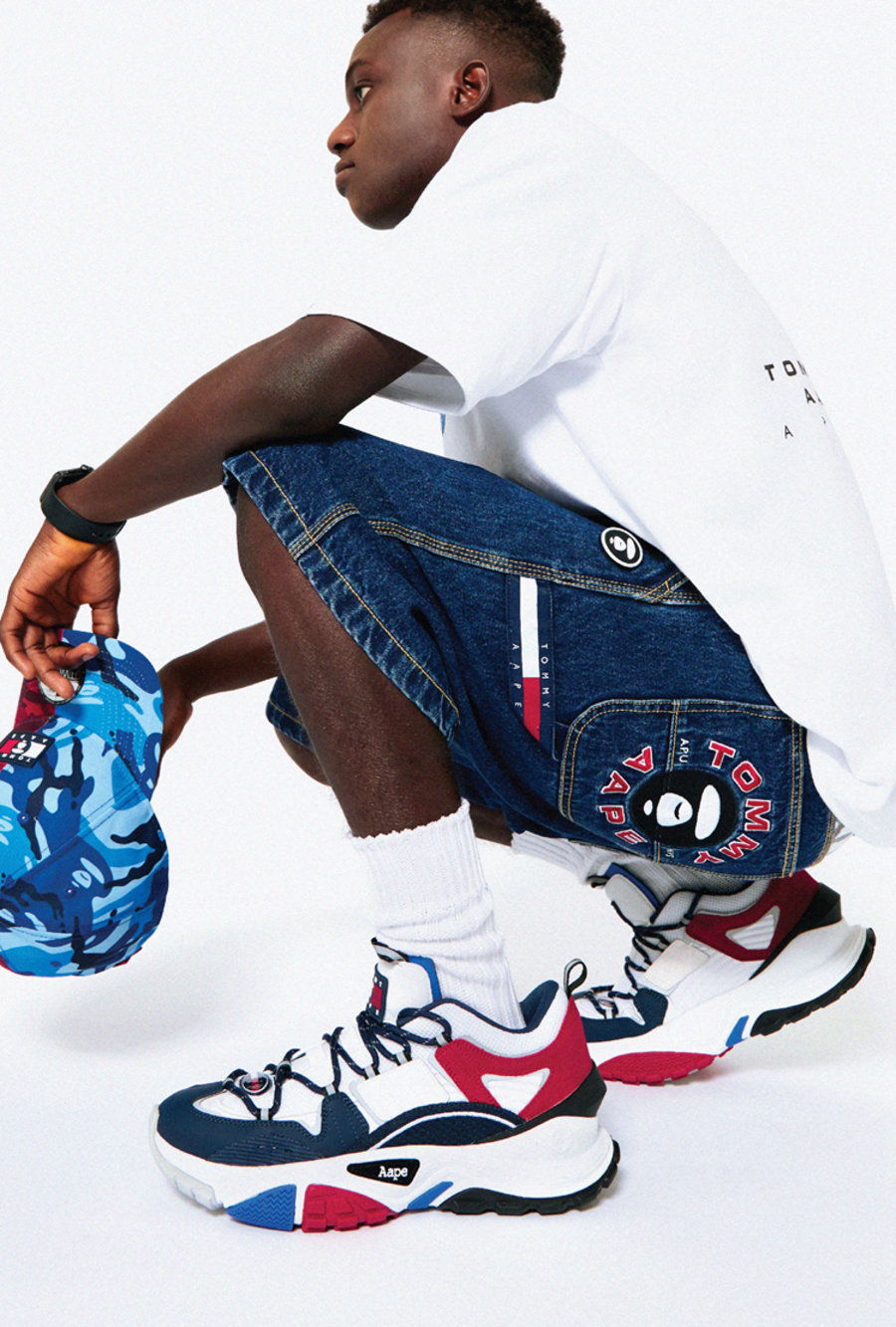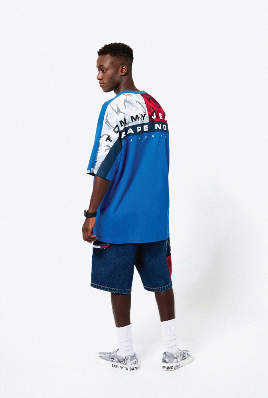 此次 AAPE 的联名对象是 TOMMY 旗下的 TOMMY JEANS 系列,TOMMY JEANS 系列包含男女款式牛仔产品、鞋类、配件以及香水。