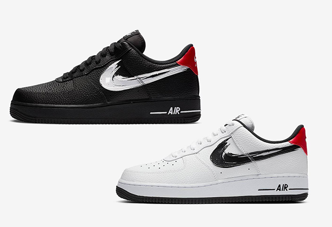 近日,海外曝光了两双特别的 Nike Air Force 1 “Brushstroke Swoosh” 款式。
