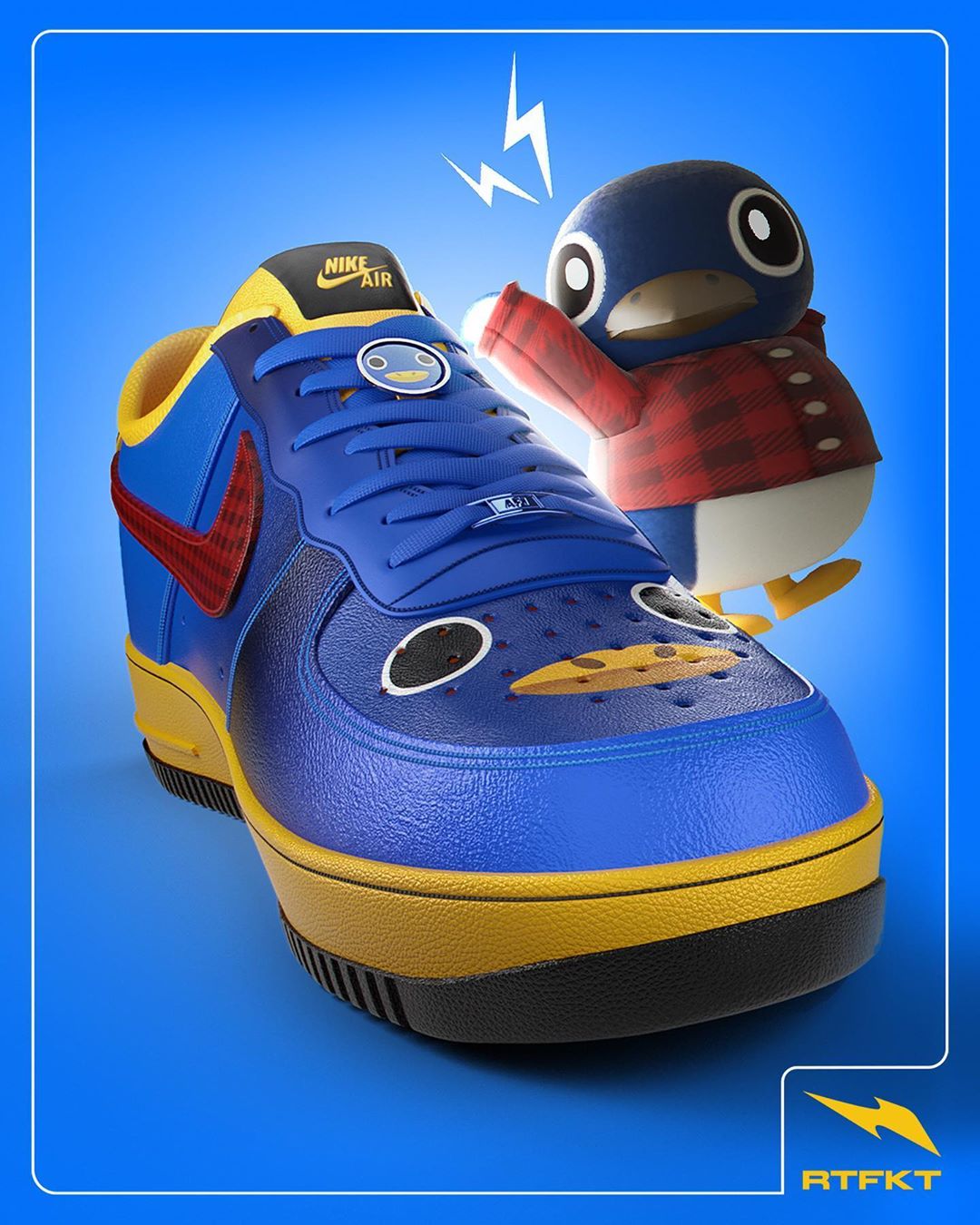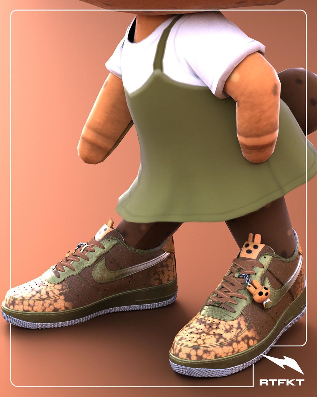 前段时间国外定制账号 @rtfktstudios,就发布了一双「动物森友会」与 Air Force 1 的联名配色。