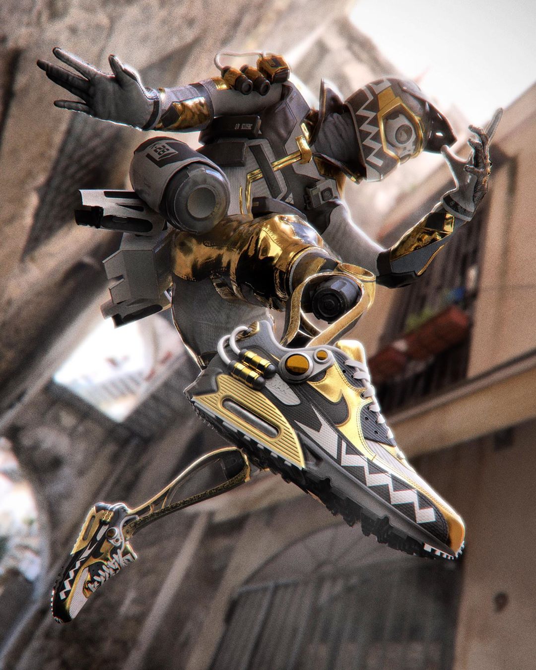 除了这双 2 双脑洞大开的定制作品外,这个团队还有不少以游戏角色为灵感的科幻球鞋定制。