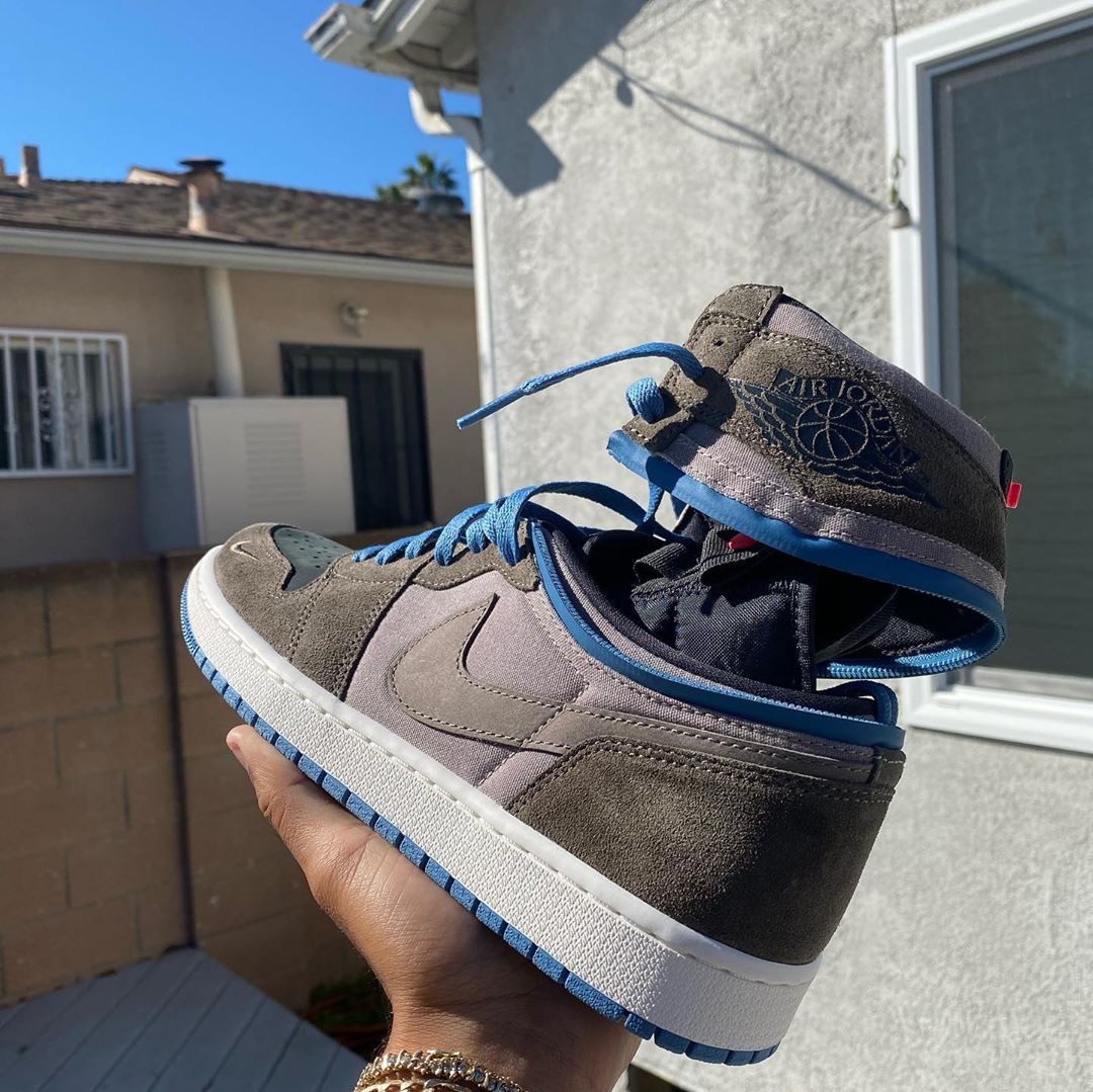 最大的特别之处在于这双鞋可以进行高、低帮的变形,原本的高帮可以通过环绕脚踝的拉链设计卸下,变成一双低帮 Air Jordan 1。