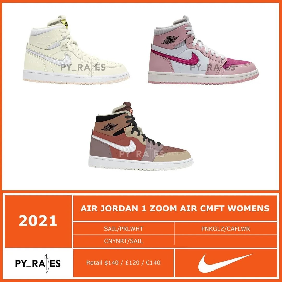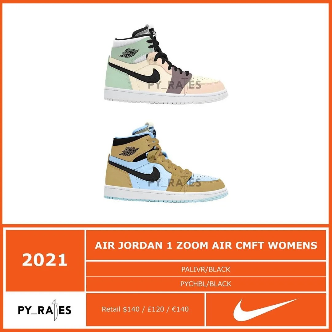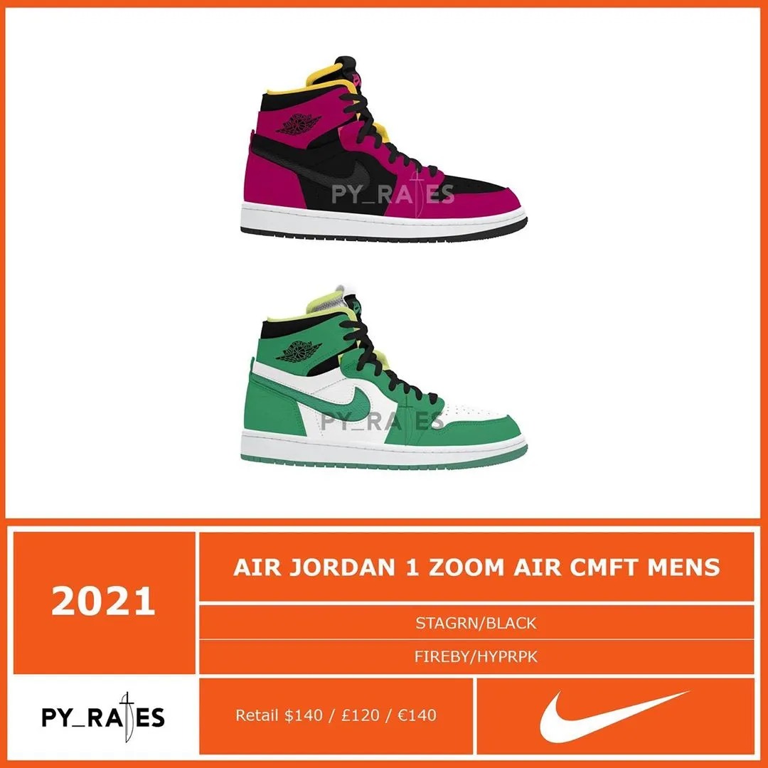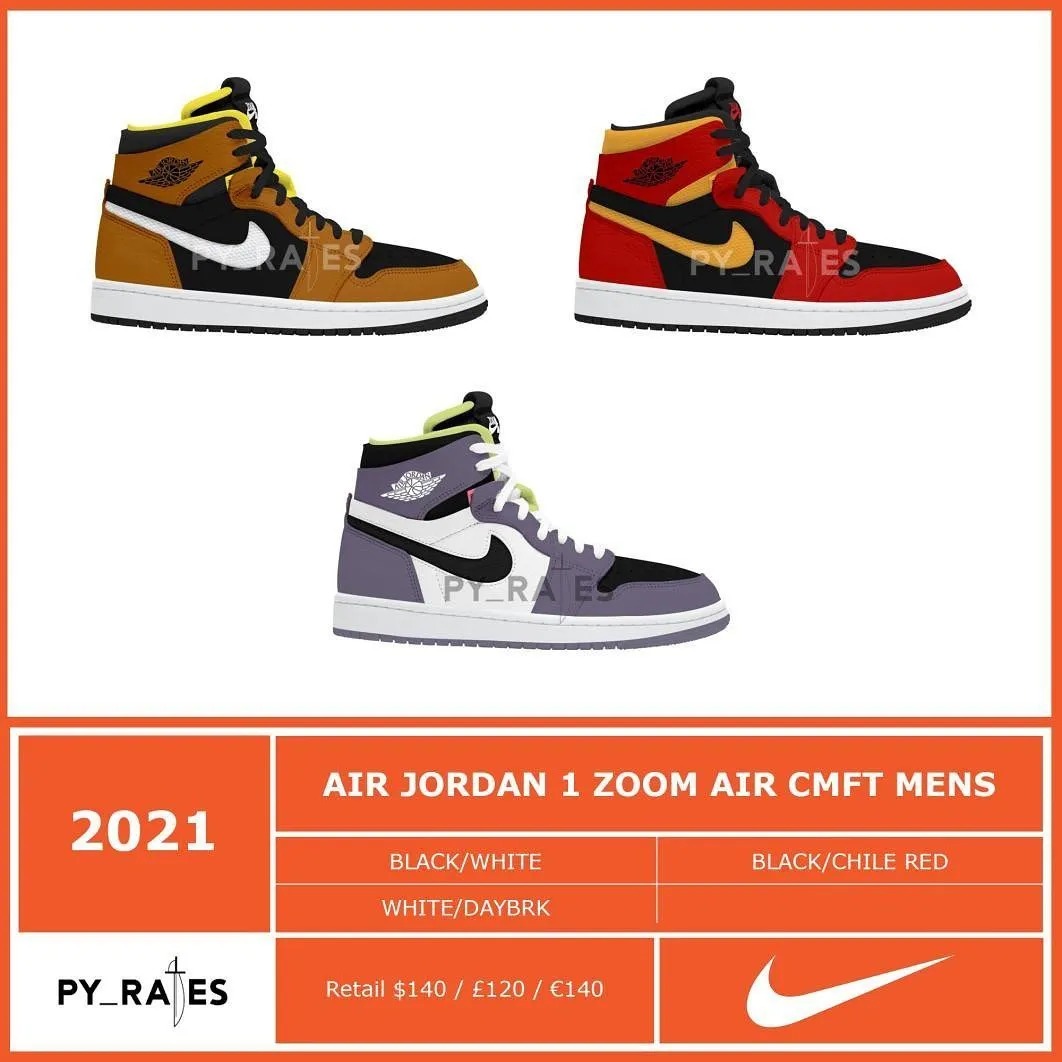 除此之外,该账号还一口气晒出 10 双全新 Air Jordan 1 Zoom AIR CMFT 的效果图,似乎搭载 Zoom 气垫的 Air Jordan 1 将在明年成为主流趋势。