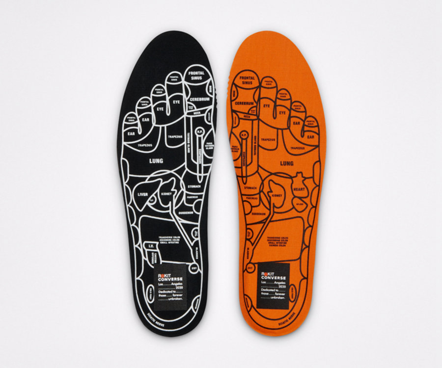 其中最抢眼的当属两双鞋分别在鞋垫以及外底处加入的中医穴位图!