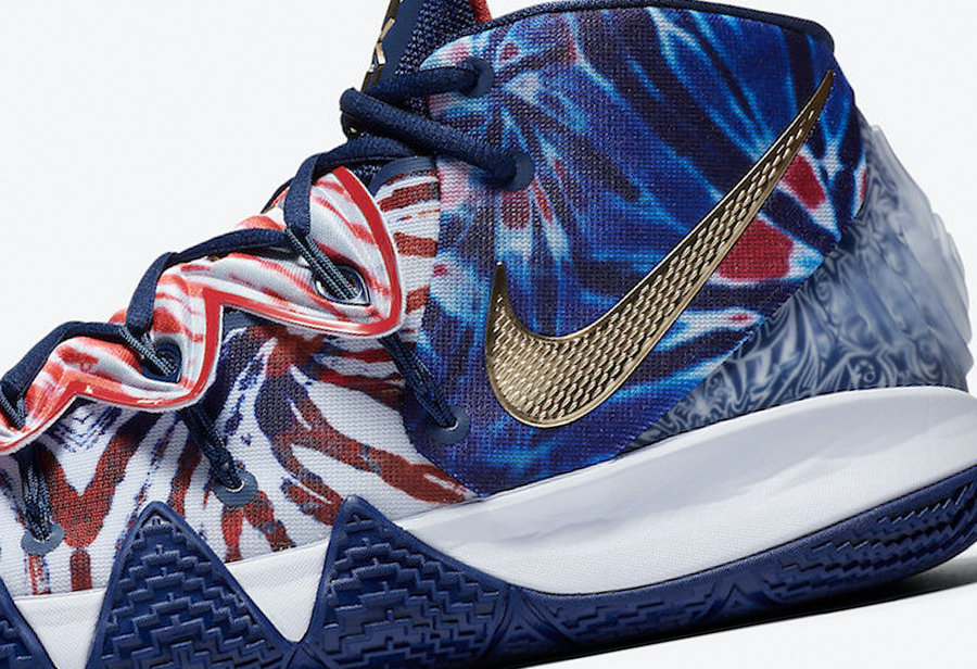 鞋面采用红、蓝、白三色扎染,呈现出美国国旗色调。