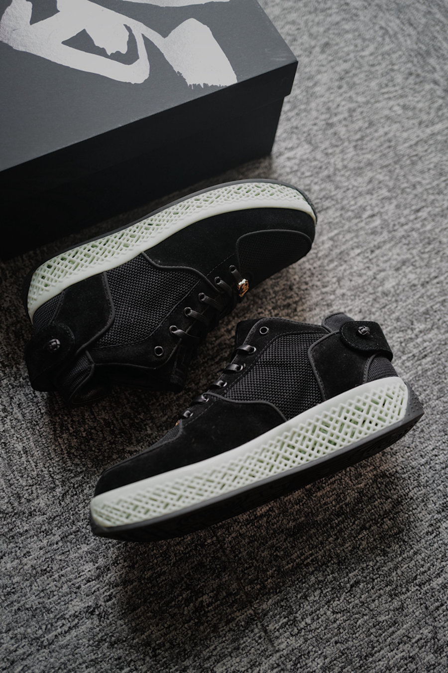 鞋身以丝绸面料覆盖,中底部分采用 3D 打印技术来赋予传统的竹丝镶嵌现代的面貌。
