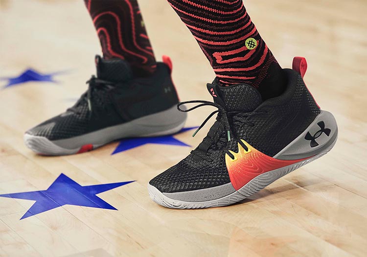 可以看出全新 UA Embiid One 首发 Origin 配色采用黑色作为主调,可以看出鞋面采用织物材质打造,能够极大程度的提升鞋面透气效果。