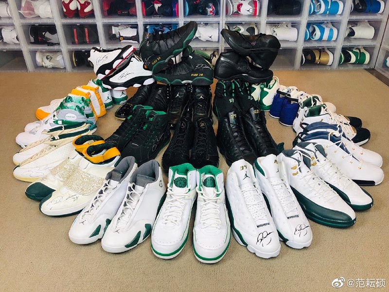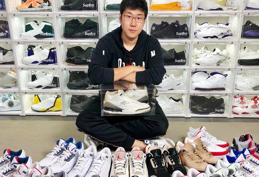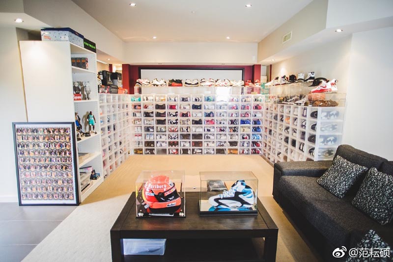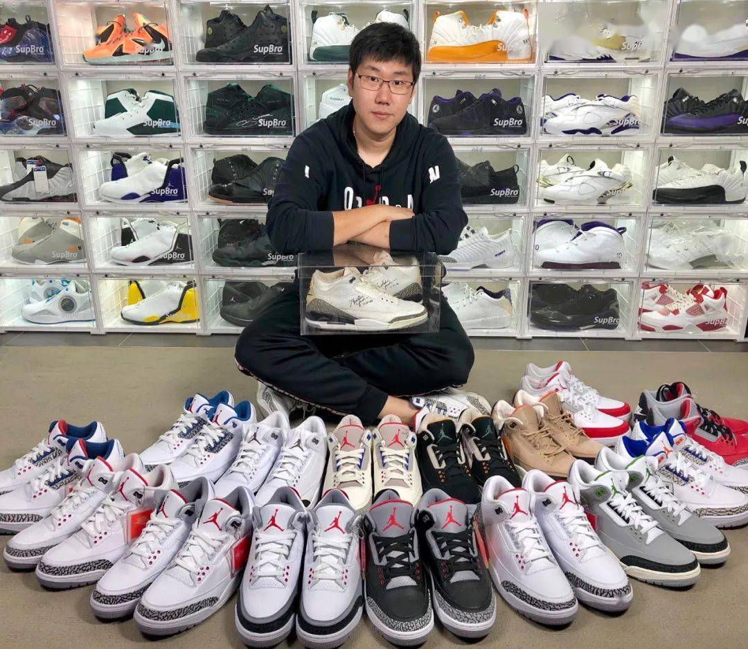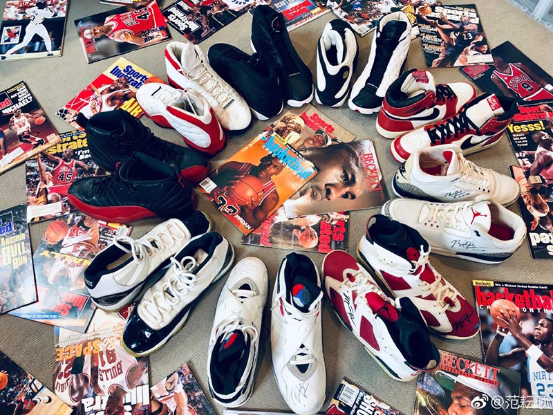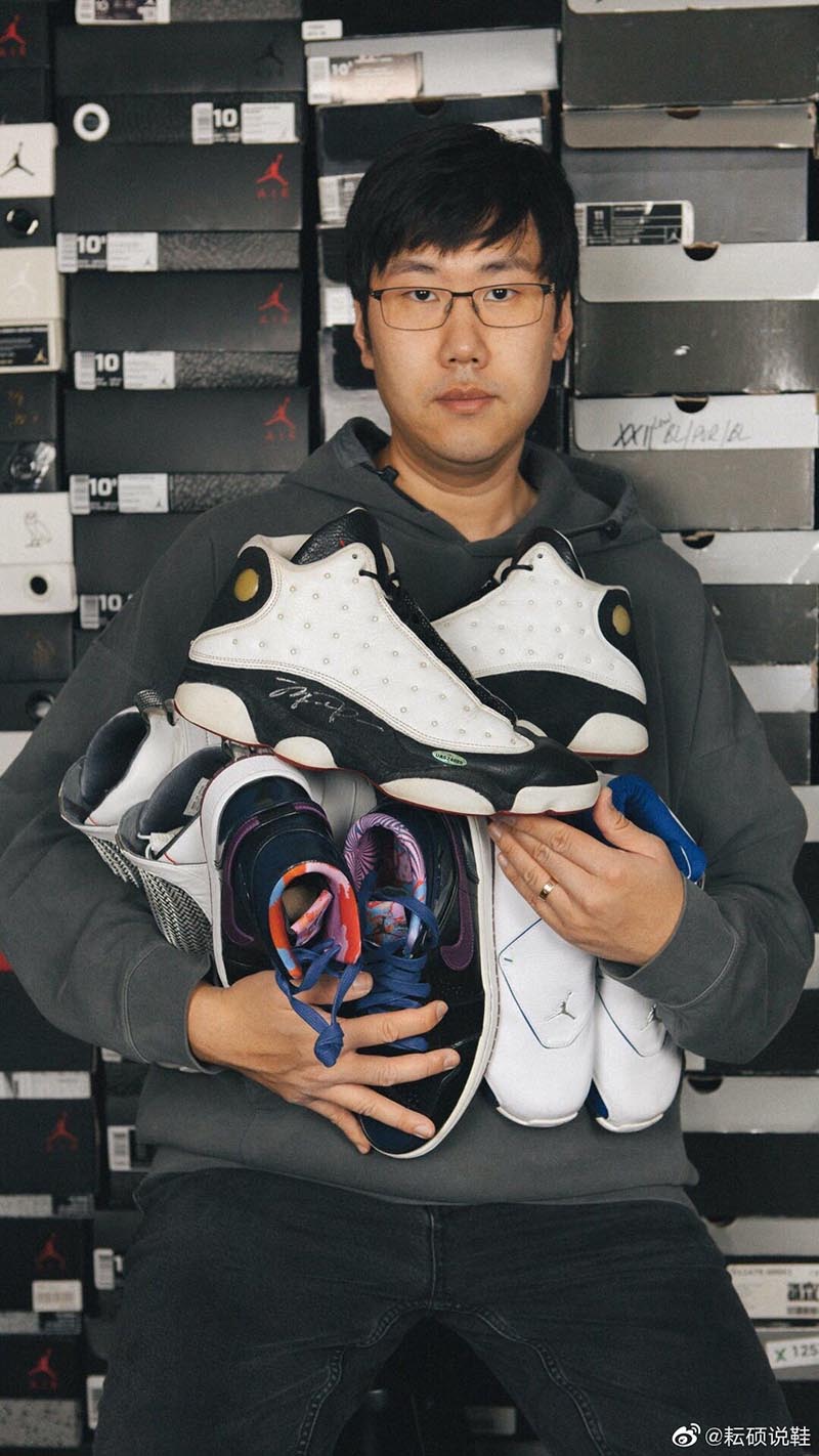 他不仅是目前国内收藏乔丹球员版球鞋最多的人,同时还拥有近百双 NBA 顶级球星的球员版球鞋。