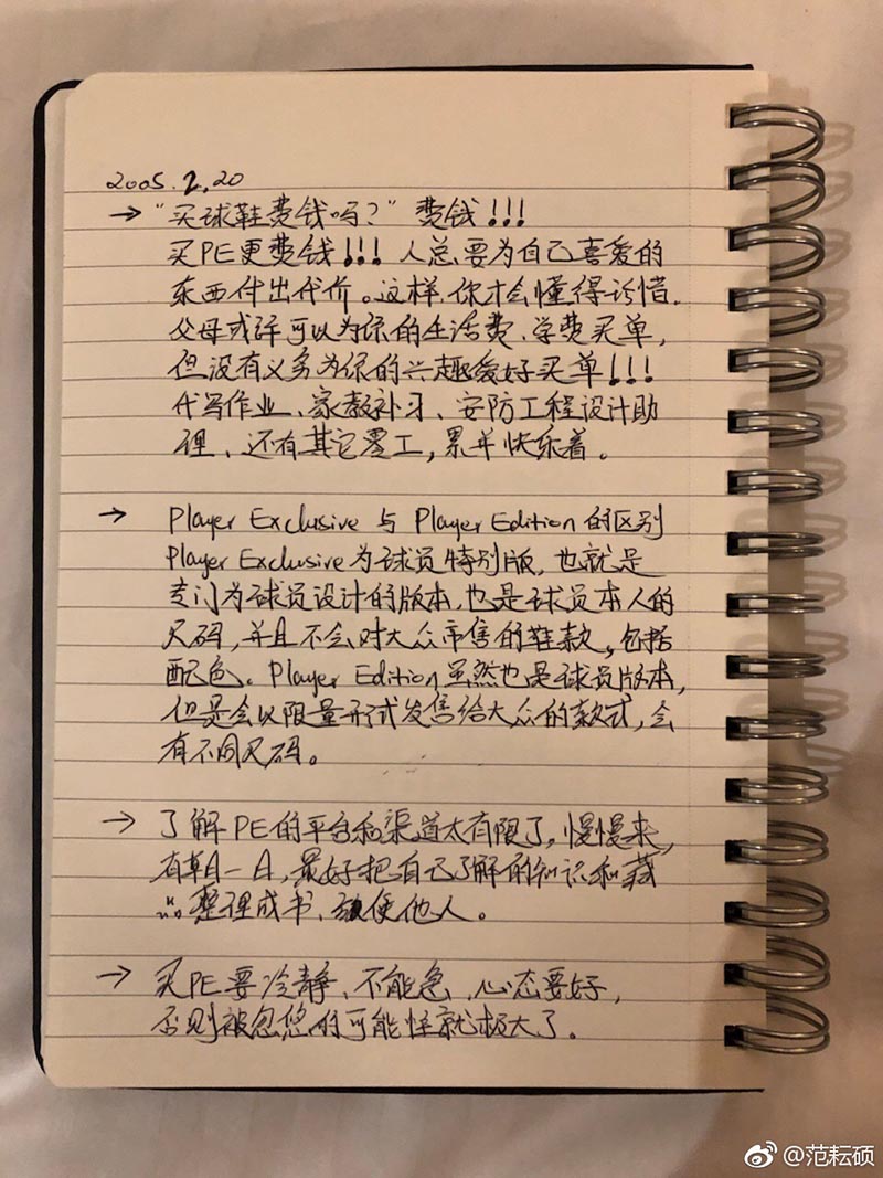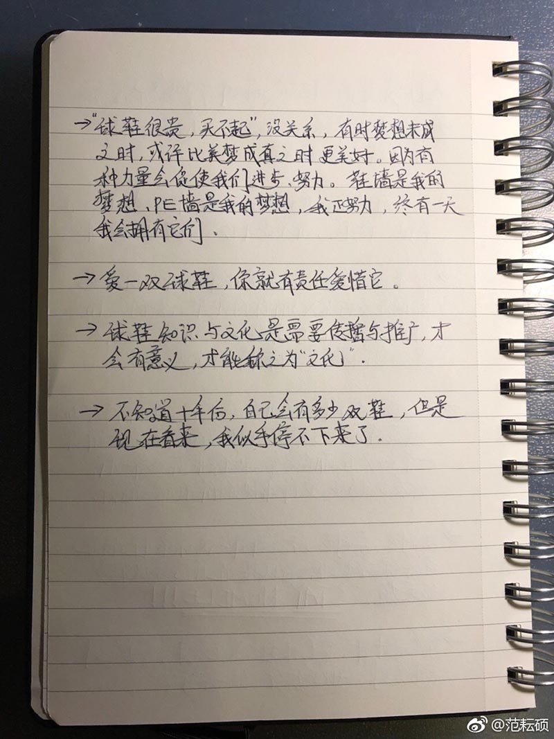 在拥有众多稀有球员版 PE 后, 他决定自己编撰一本关于球员版球鞋的《耘硕说鞋》图书。