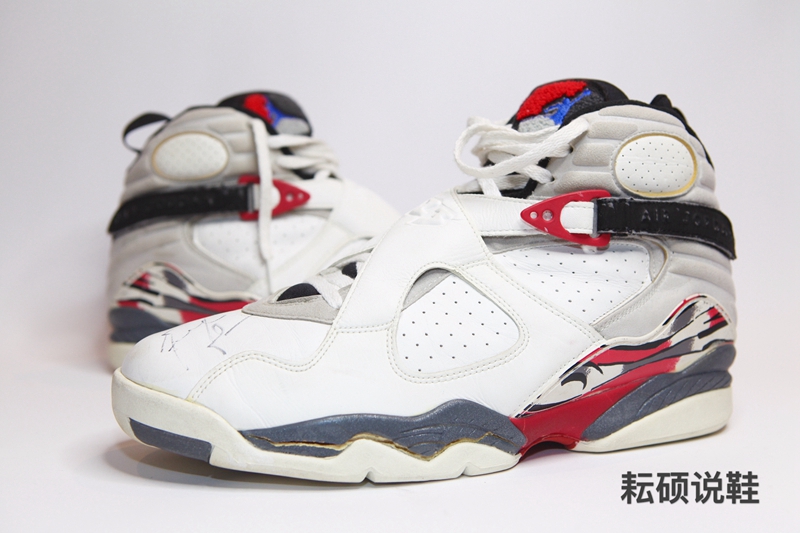 在他的球鞋收藏中,最有纪念意义的一双就是眼前的这款乔丹在 1993 年 4 月 22 日比赛中上脚的 Air Jordan 8 PE。