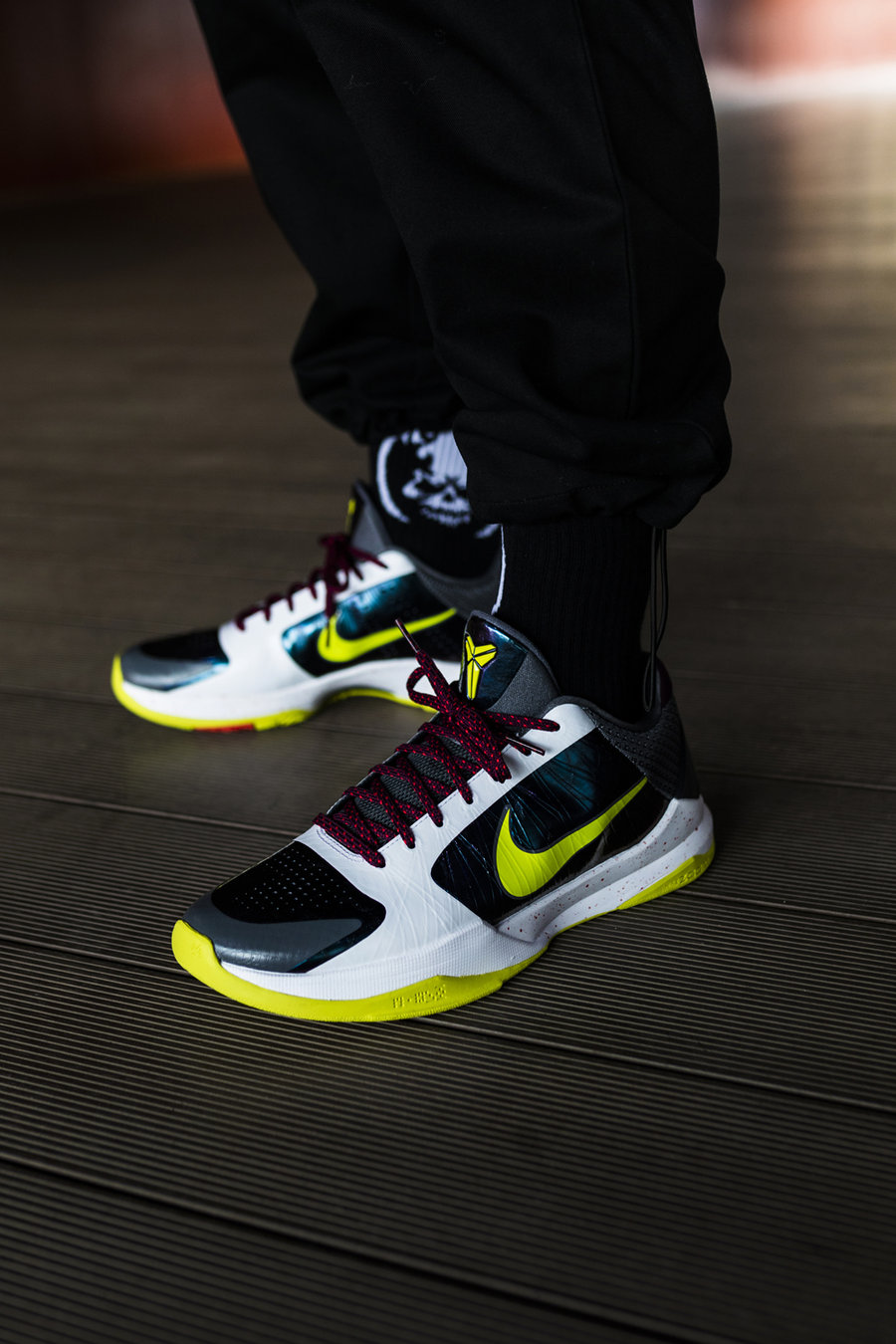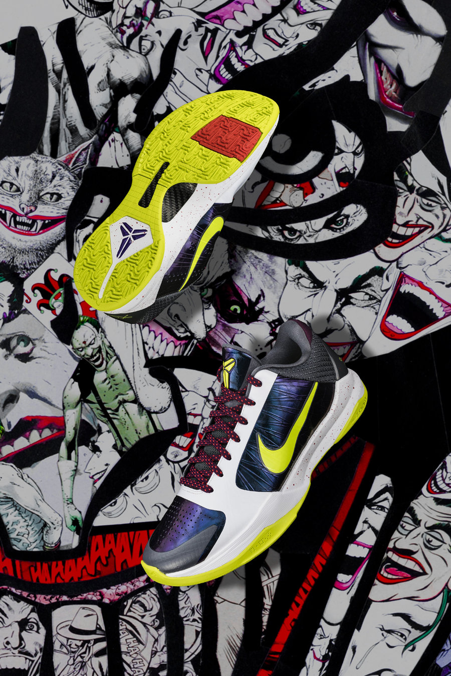 首波发售的 Kobe 5 Protro 中,唯一一款元年配色就是 Chaos 小丑配色。