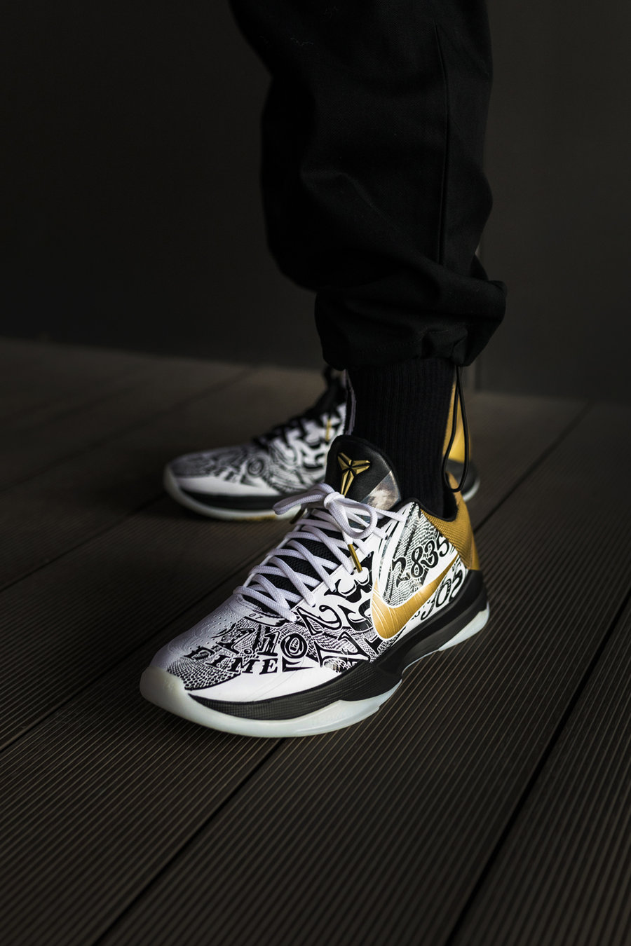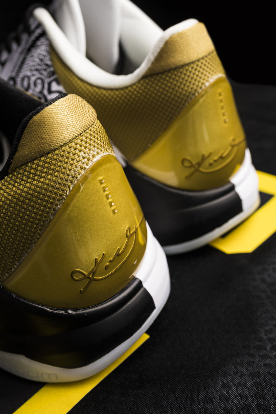 Swoosh、后跟及 Logo 的金色点缀,让人回想起科比追逐荣誉的历程。
