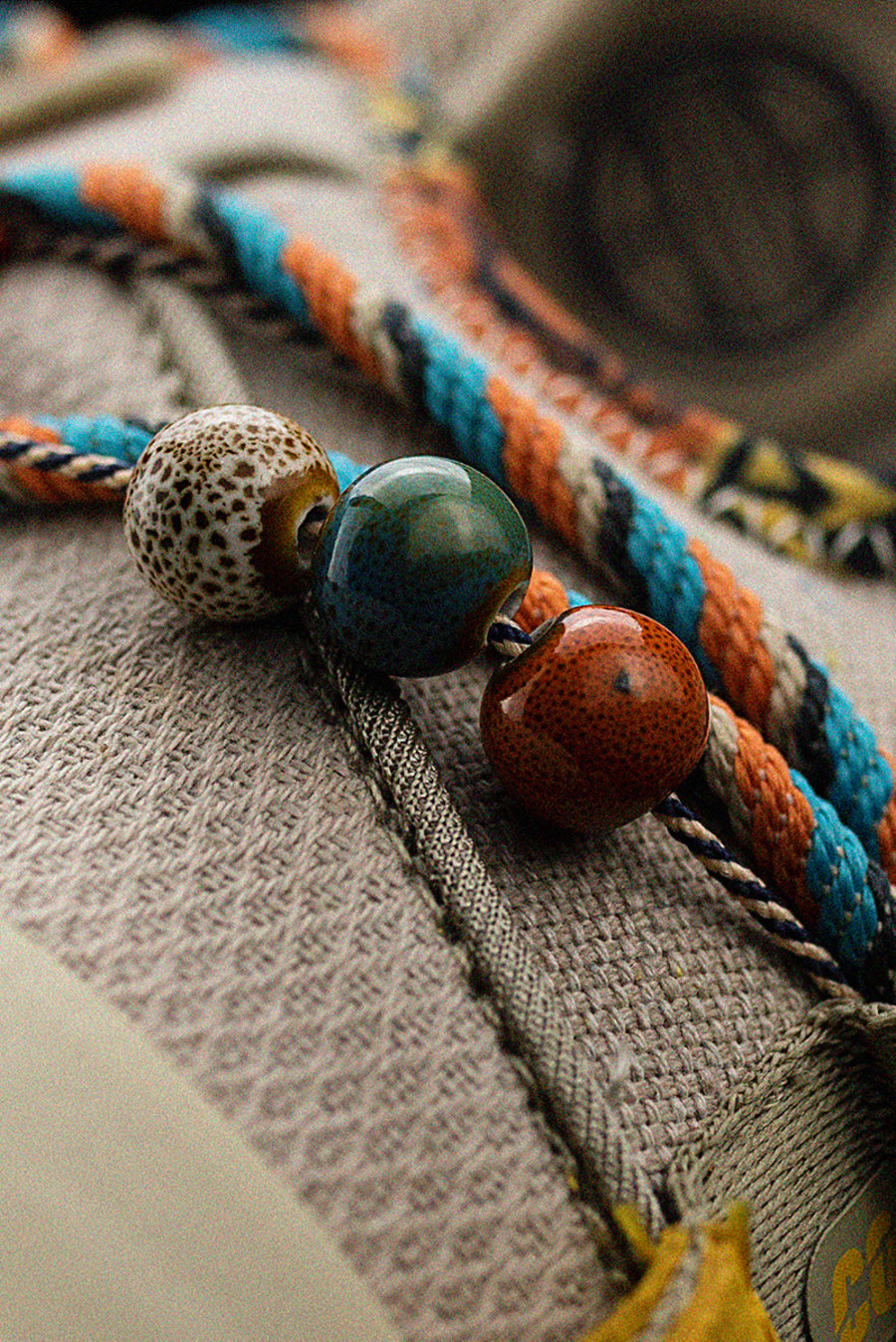 整双鞋最大亮点以及最为独特的细节则是鞋帮下方的串珠设计,直接将丝绸之路上的西域风情体现的淋漓尽致。
