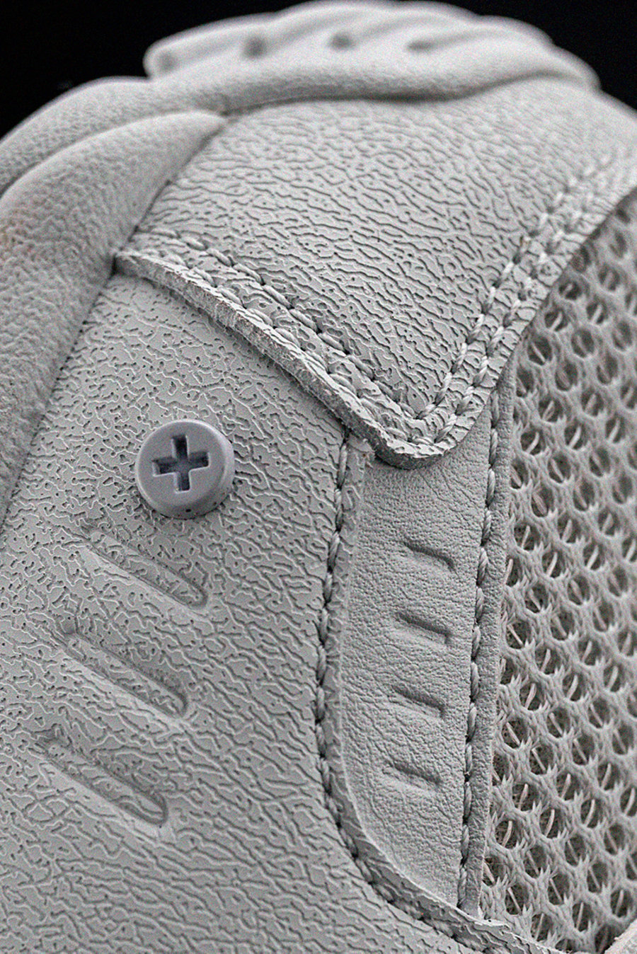首先便是鞋头处的螺丝钉设计,同时可以看出鞋面带有的特殊纹理,质感出众。