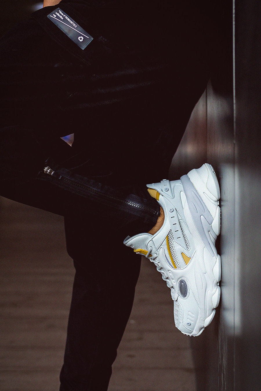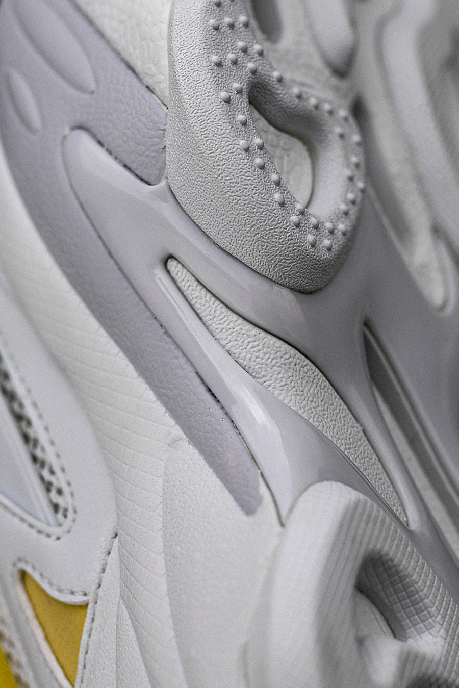 织物、麂皮以及热熔材质的应用,为鞋面带来极为丰富的层次感。