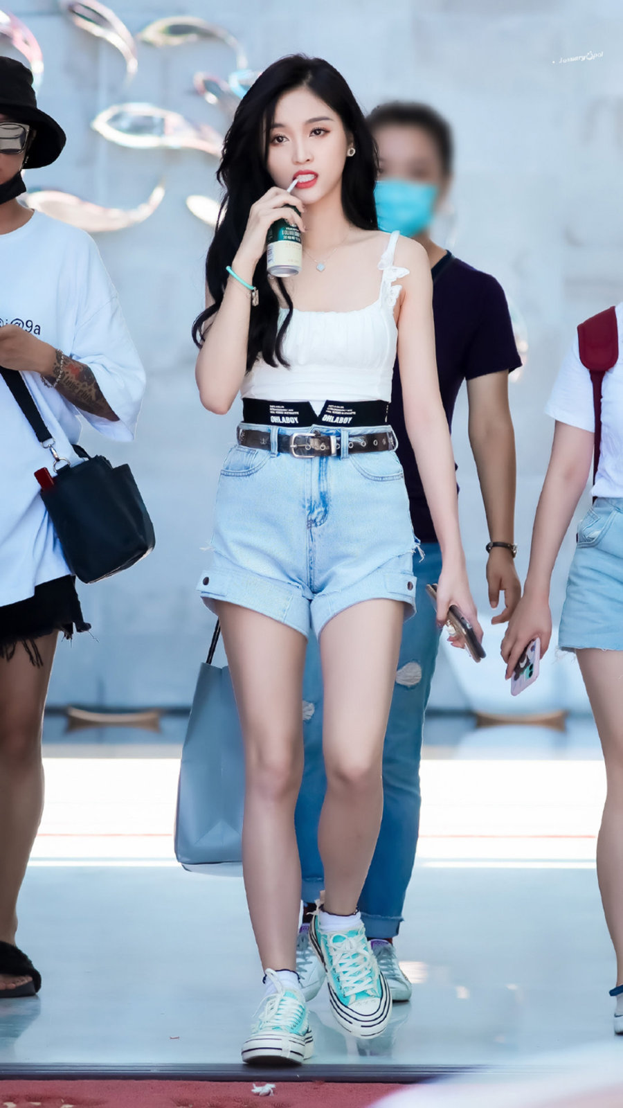 江疏影最近又走起休闲潮酷范儿,上脚 adidas Originals ZX ALKYNE W,搭配破线牛仔热裤和 Oversize 薄款卫衣。
