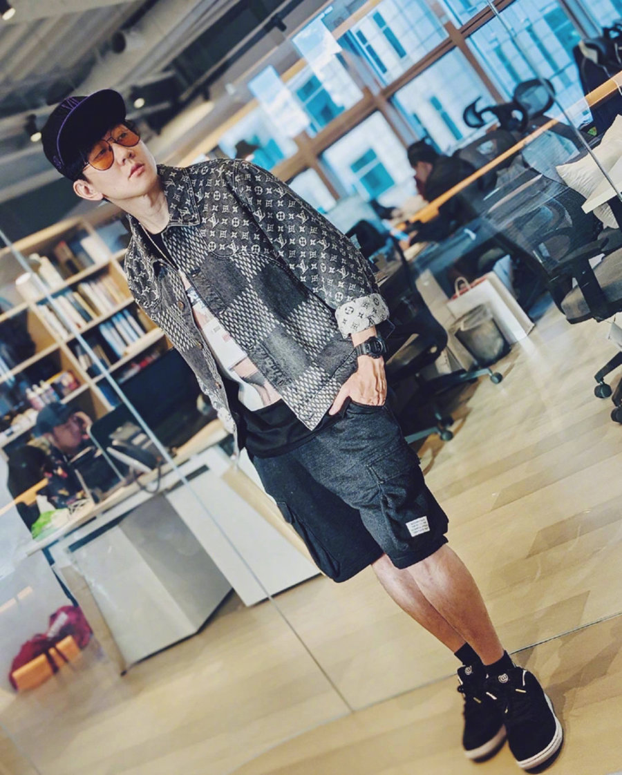 林俊杰近期还上脚积木熊 Nike SB Dunk Low,搭配工装短裤和 LV 拼接牛仔外套,整体暗色系的穿搭低调高端且休闲潮流。