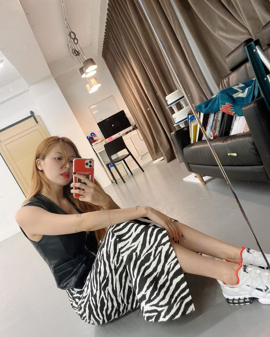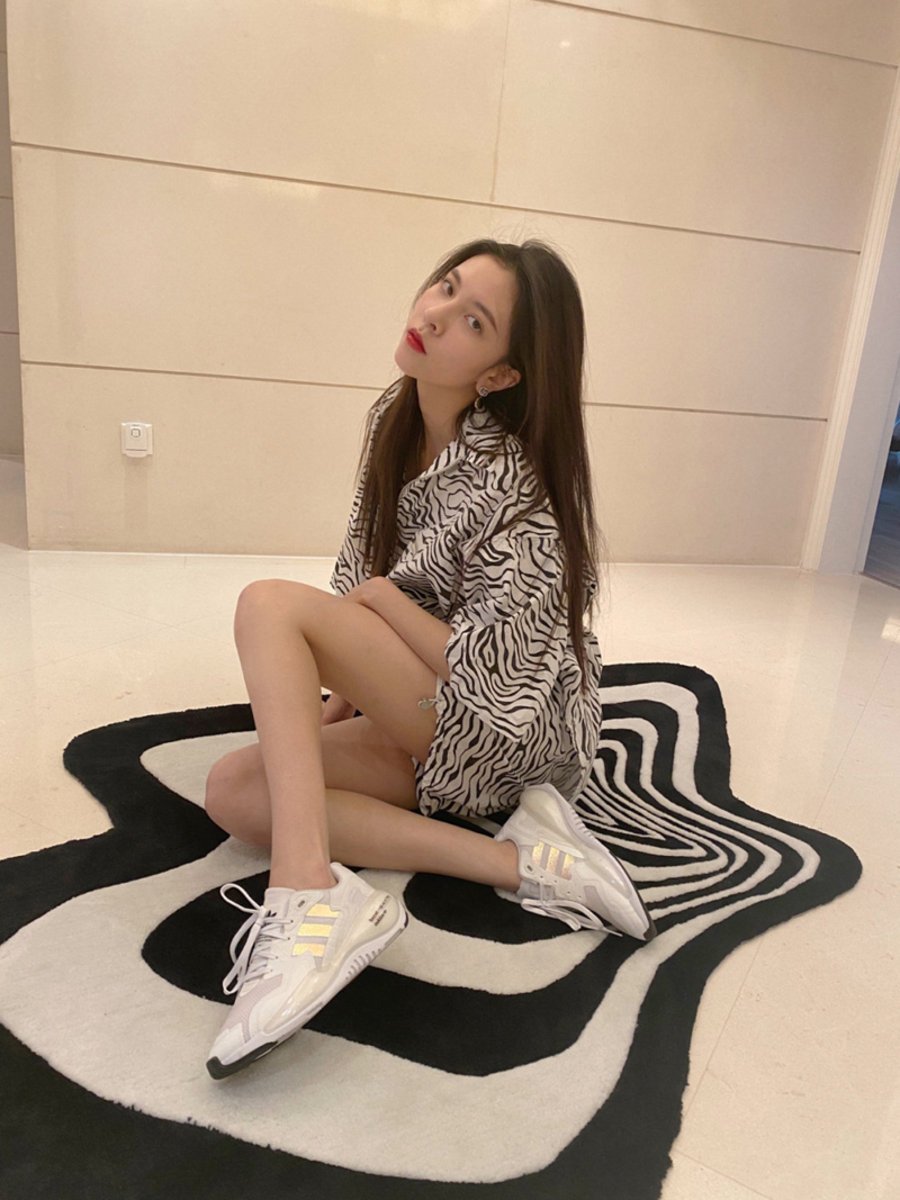 “中国泫雅”宋妍霏上脚新发售的 adidas Originals ZX,搭配斑马纹衬衫。穿着运动鞋也是一样慵懒性感!