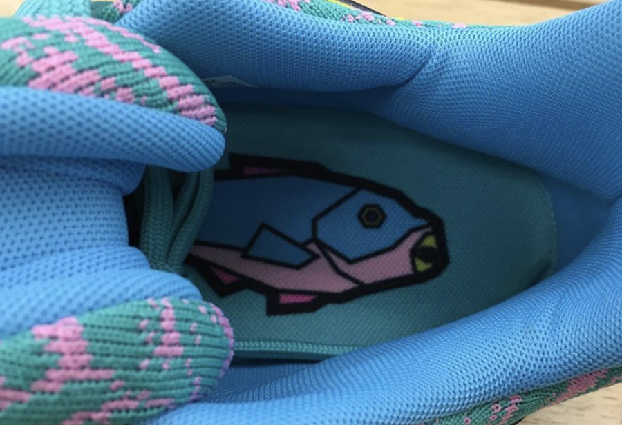 最大亮点还在于鞋身注入鱼类纹理,鞋舌更增加专属图案,直击主题。