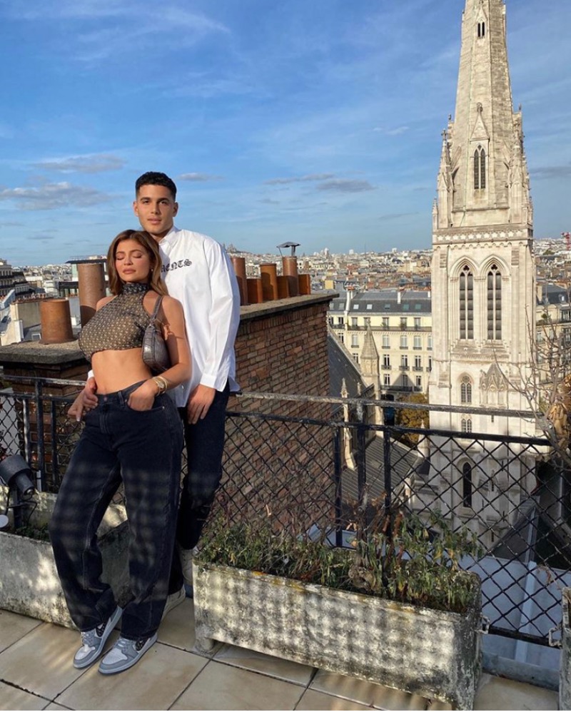 凯莉近期在 Instagram 晒出一张合影,上脚 Dior x Air Jordan 1。