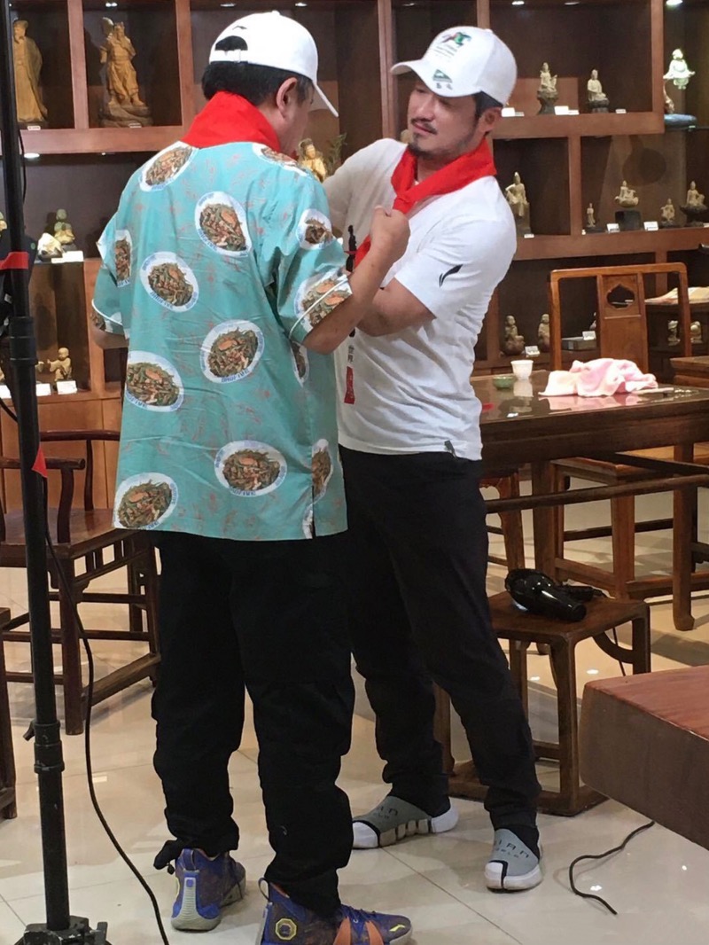此前于谦在直播中上脚李宁,搭配 Oversize 工装裤和辣椒炒肉衬衫。