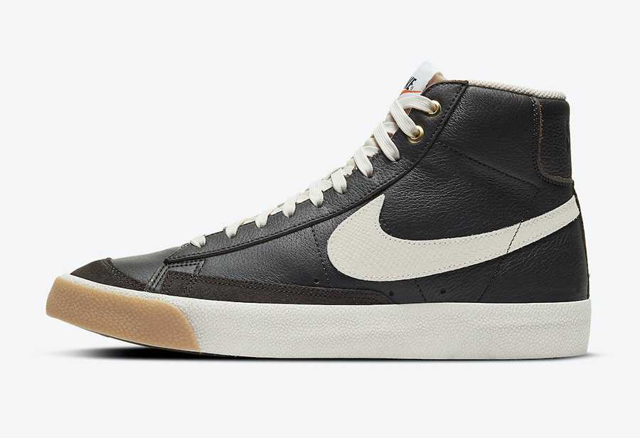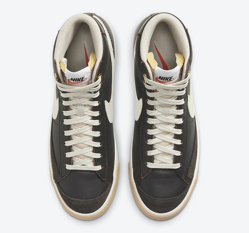 鞋身采用棕色细腻皮革覆盖鞋身,搭配磨砂皮革质感的鞋尖及鞋侧补强,加之奶白色 Swoosh 和生胶外底,营造出浓郁的复古质感。
