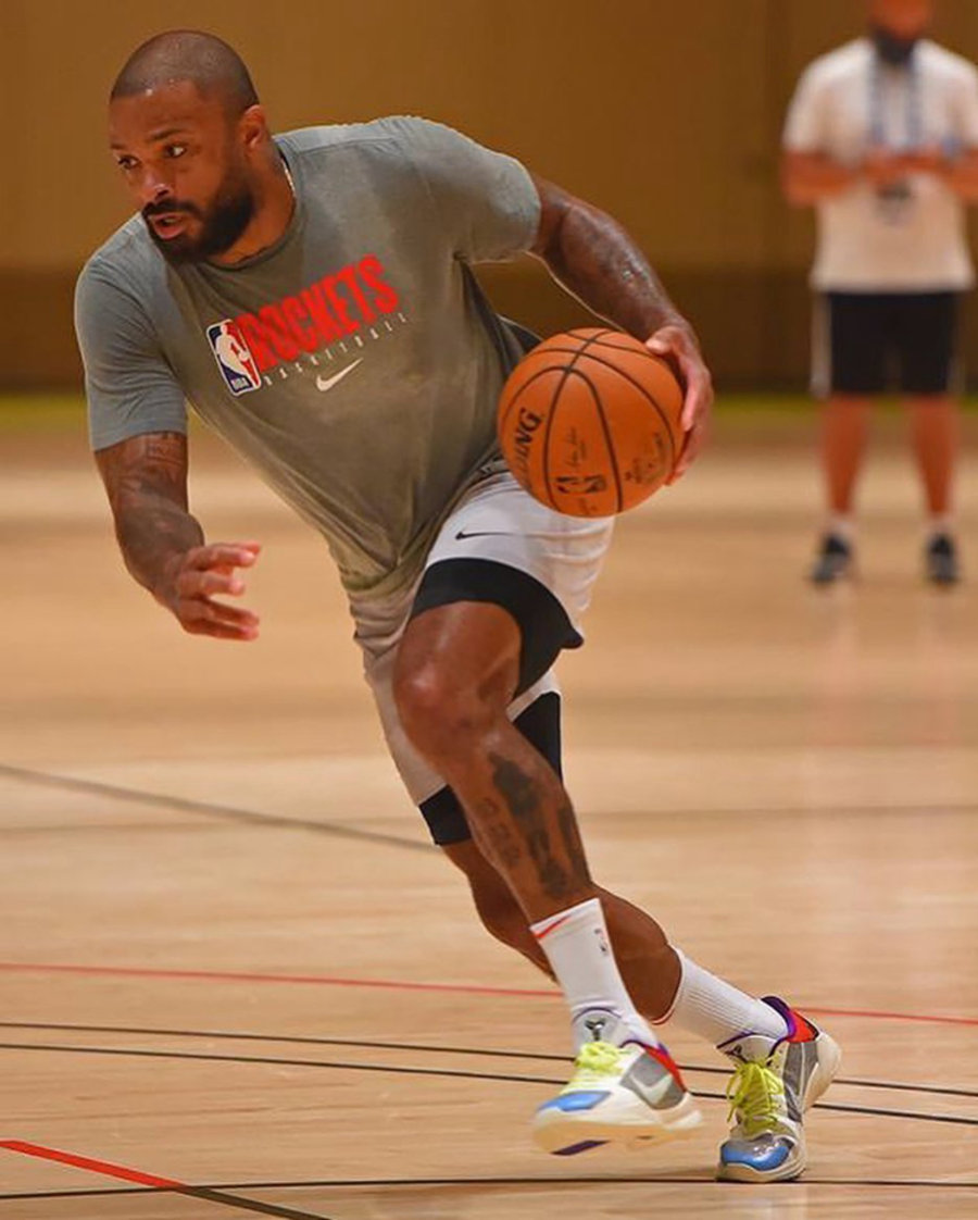 而最新配色正是此前 PJ·塔克抢先上脚的专属 PE 配色!