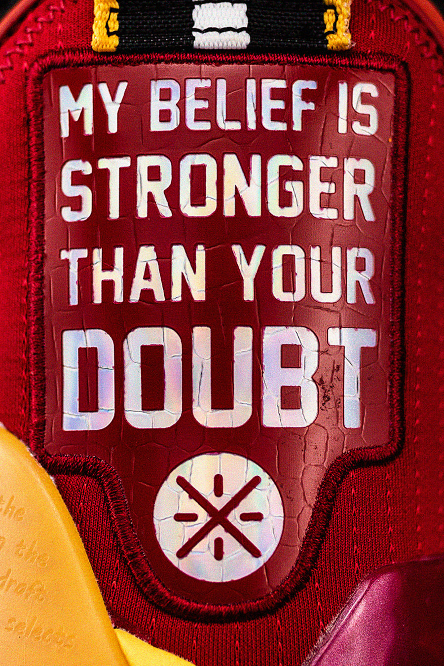 右脚就更有排面了,以相同材质呈现 “MY BELIEF IS STRONGER THAN YOUR DOUBT” 这句韦德的退役宣言。