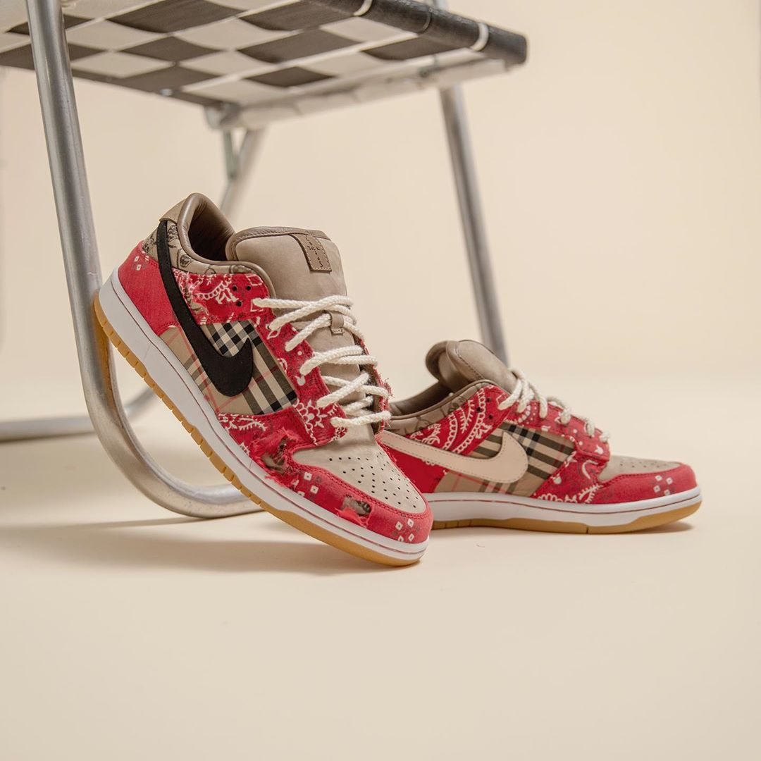 正是目前市场价突破万元的 Travis Scott x Nike SB Dunk Low!