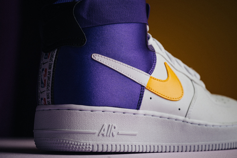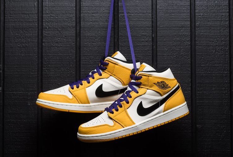 官方命名「湖人」配色,采用白黄配色装扮鞋身,侧身搭配黑色 Swoosh Logo,鞋带辅以紫色装扮,完善湖人配色效果。