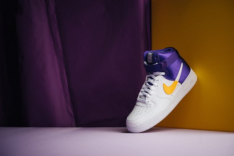 从 “倒闭款” 到市价最高快翻一倍,去年发售的这双 Nike Air Force 1 High “Lakers”,诠释了一把什么叫「咸鱼翻身」。鞋身、鞋帮以及 Swoosh Logo 三处位置诠释湖人配色效果。