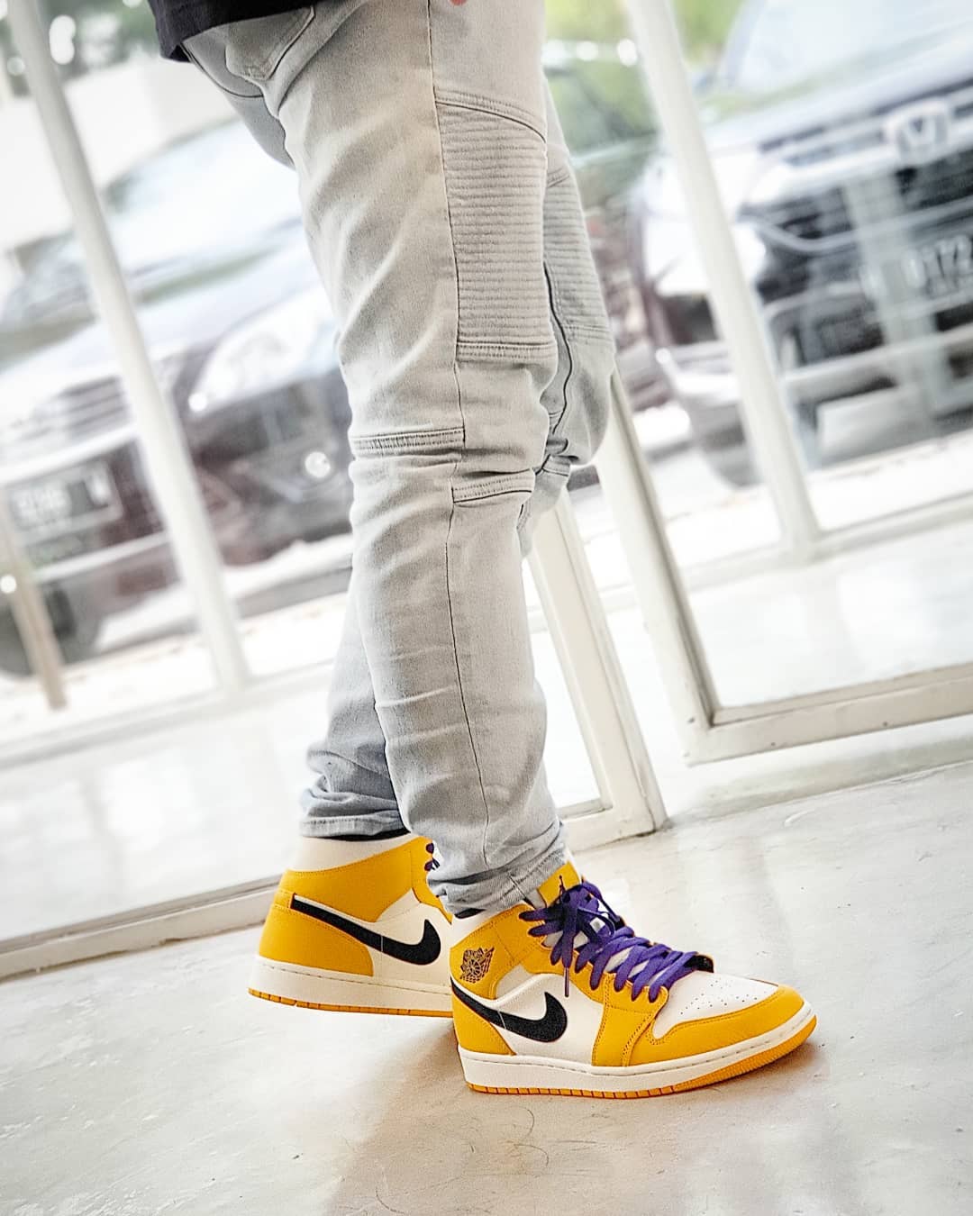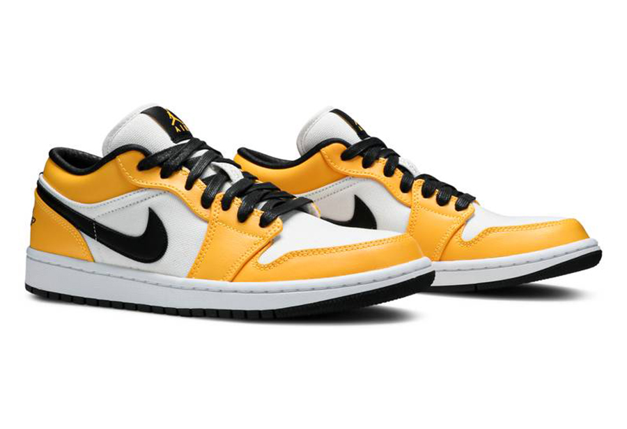又是一双配色名为 “Laser Orange” 的球鞋,只不过将白黄主调配色放在 Air Jordan 1 Low 的鞋型之上,不出意外也被冠以 “湖人” 之名。