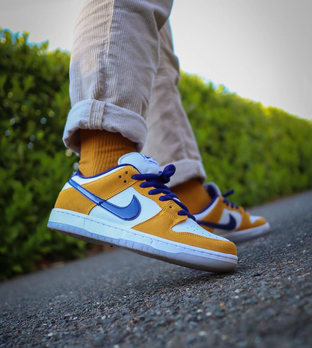 被称为「湖人 Dunk」的 Nike SB Dunk “Laser Orange”,从配色名就能看出与 「湖人 AJ3」一样,均是以白黄配色呈现,但是由于搭配上紫色 Swoosh Logo......就摇身一变成为 “湖人配色”。
