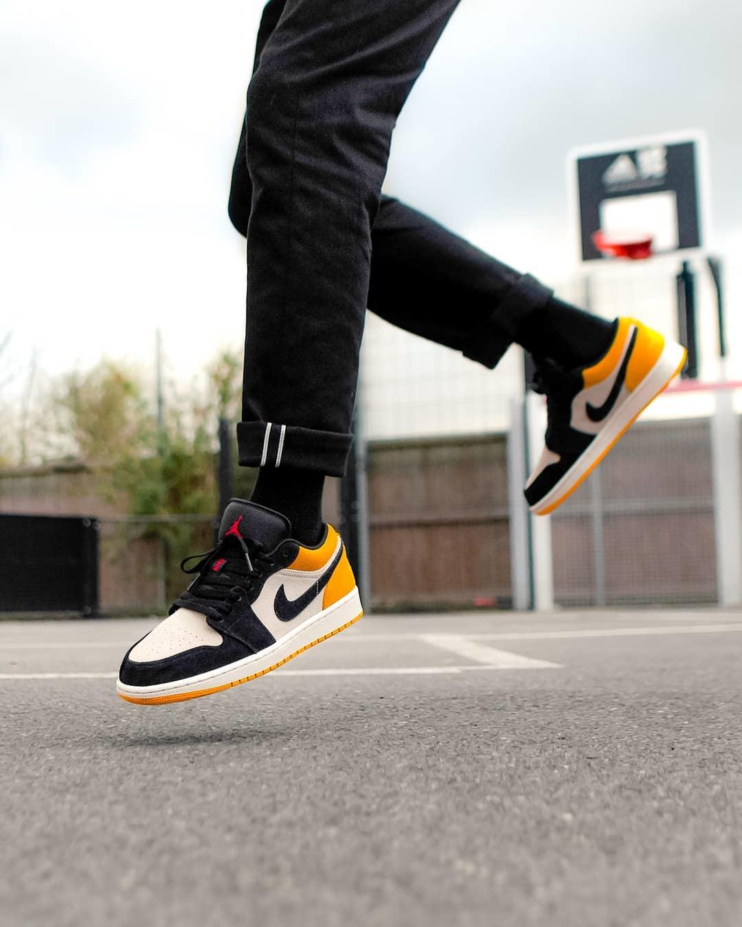 去年 Jordan Brand 针对 Air Jordan 1 Low 这一鞋型推出了相当多的配色,其中这双「黑黄脚趾」起初价格一直不高,千元以内即可入手。