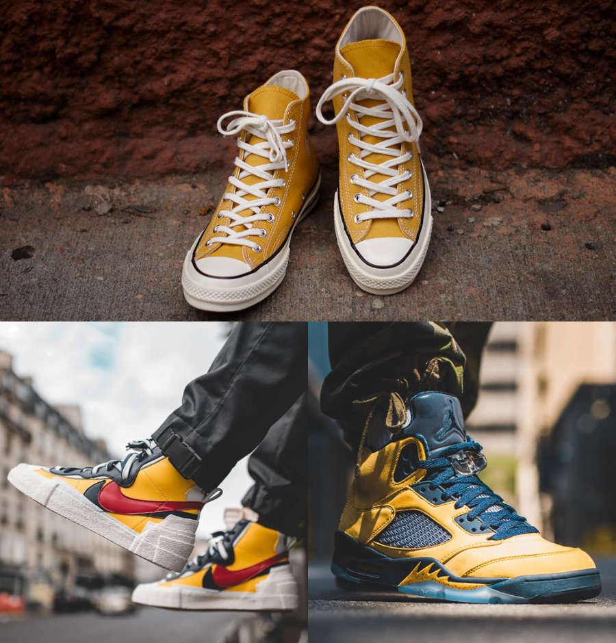更有意思的是,经典日落黄 Converse Chuck 70、Sacai x Nike Blazer With The Dunk、密歇根 Air Jordan 5 都被冠以 “湖人配色” 之名!