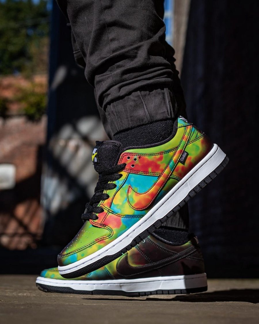 称得上是今年最好玩的球鞋新品。来自德国柏林的球鞋店铺 Civilist 与 Nike 带来眼前这双热成像 Dunk SB。