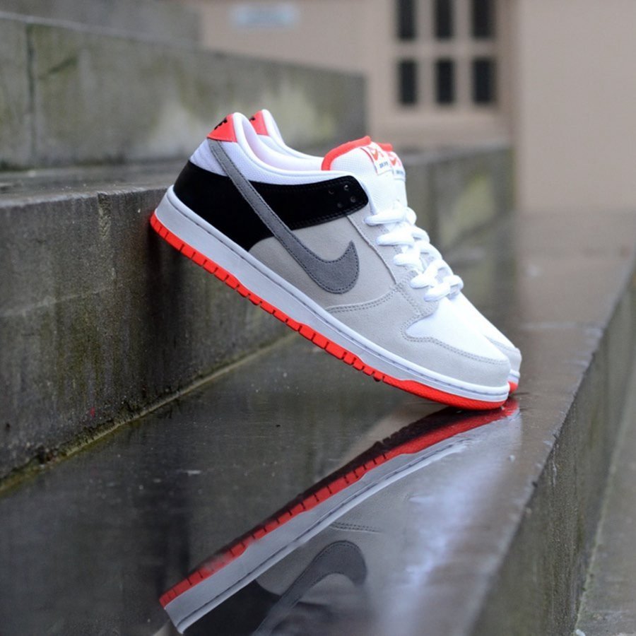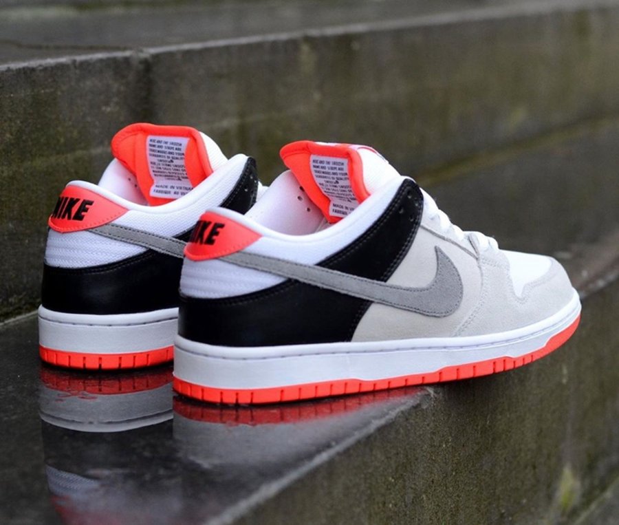 同样移植自 Nike Air Max 阵营的经典配色,眼前这双 Infrared 主题 Dunk SB Low 通过素雅的灰、黑装扮,衬托构成独具一格的 「红外线」 元素