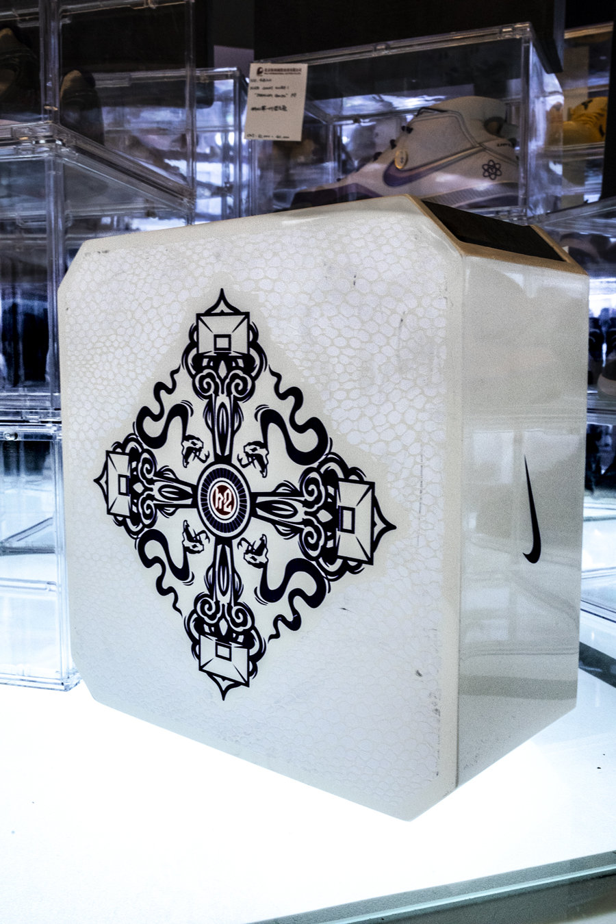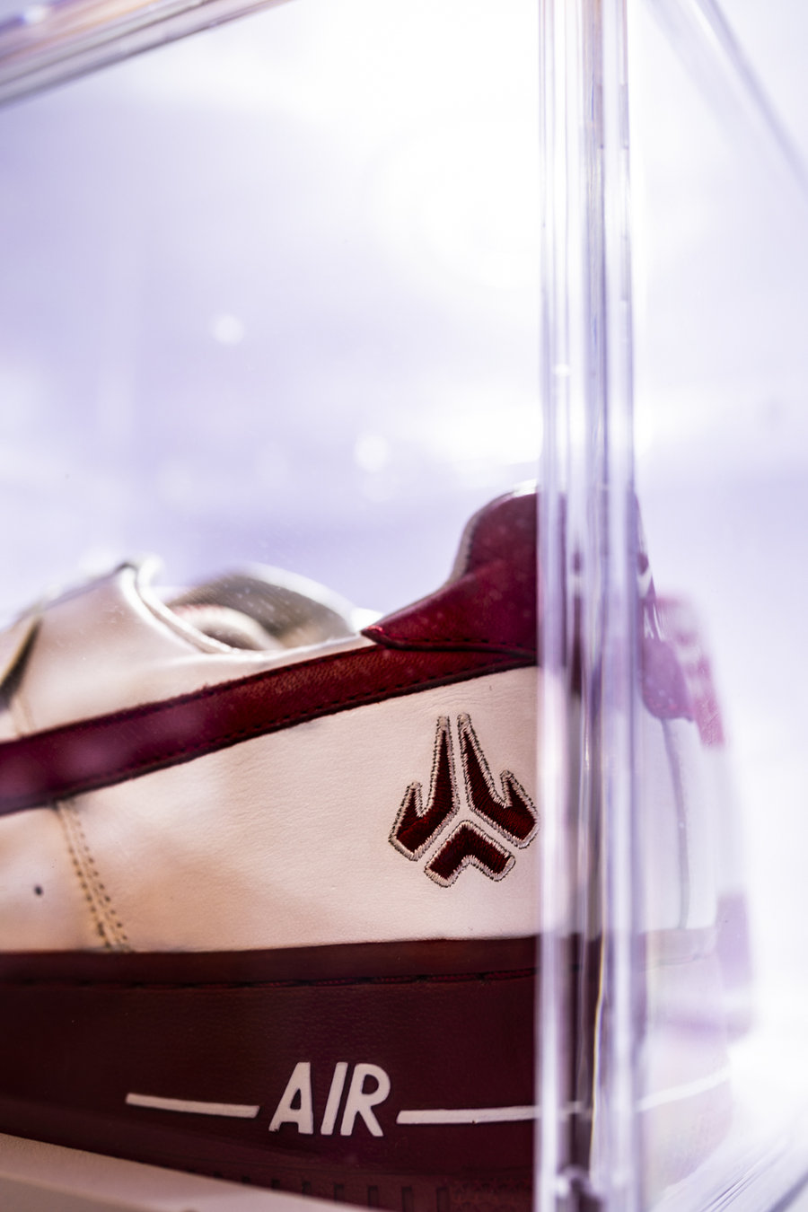 同属一个拍卖系列的 Nike Air Force 1 PE,后跟的 Logo 为最早的设计雏形,存世量同样非常稀少!