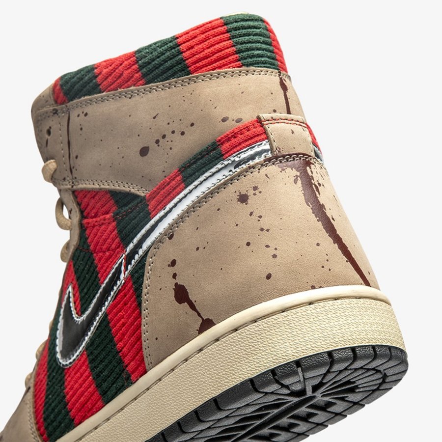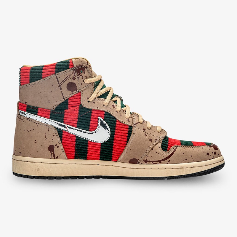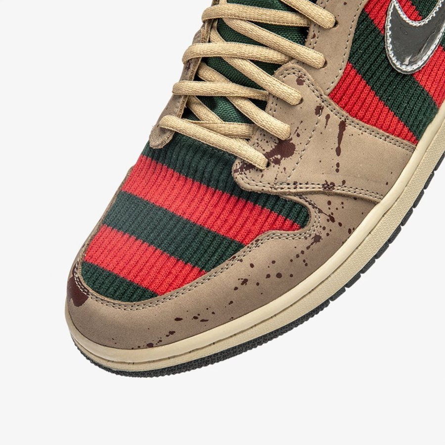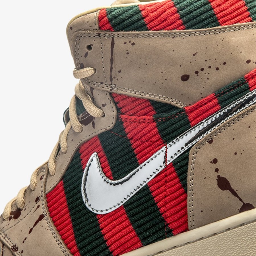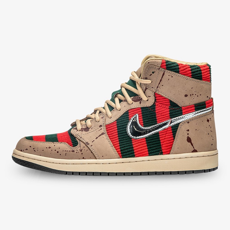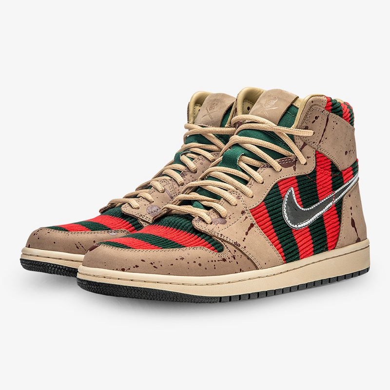 此次定制选用 Air Jordan 1 作蓝本,将电影中 Freddy 的造型融入其中。