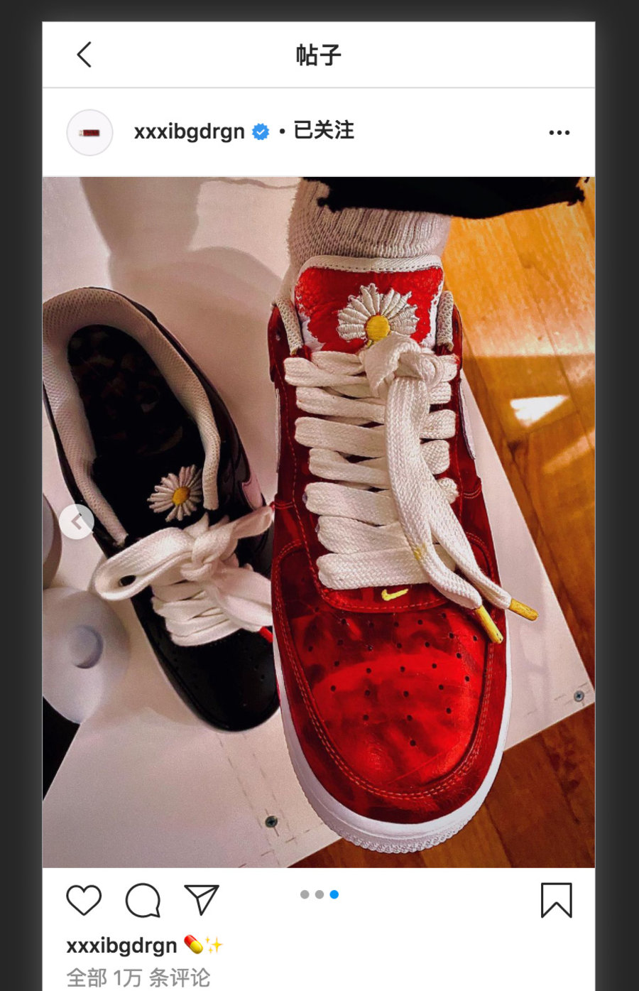 在临近发售之际,权志龙本人也通过自己的社交网络晒出一款特别版本——一双红色配色的联名 AF1。