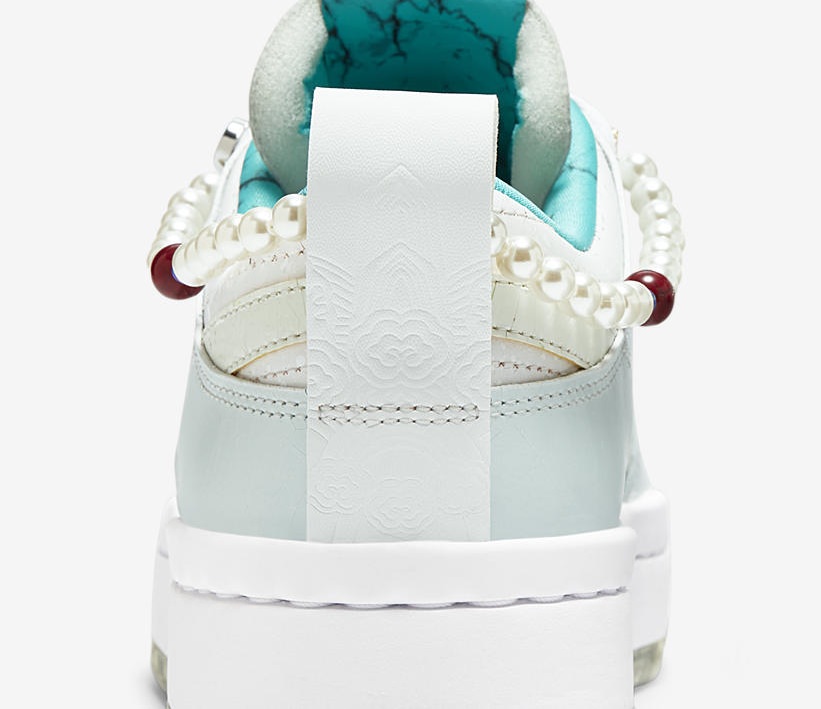 刮刮乐鞋面,还有宝石串珠点缀,后跟祥云暗纹,古典华丽韵味,真的算是近几年设计和评价都很不错的中国风球鞋。