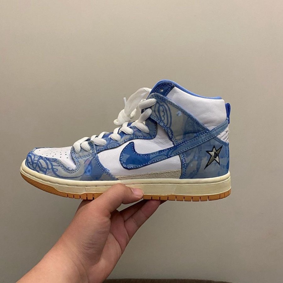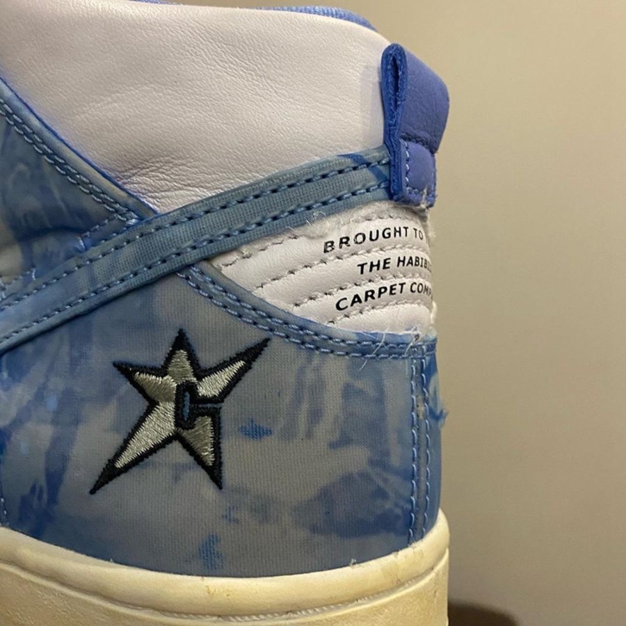 在本月初滑板店铺 Carpet Company 与 Nike 的联名 SB Dunk High 首次曝光,今天又有海外媒体晒出更多实物图。