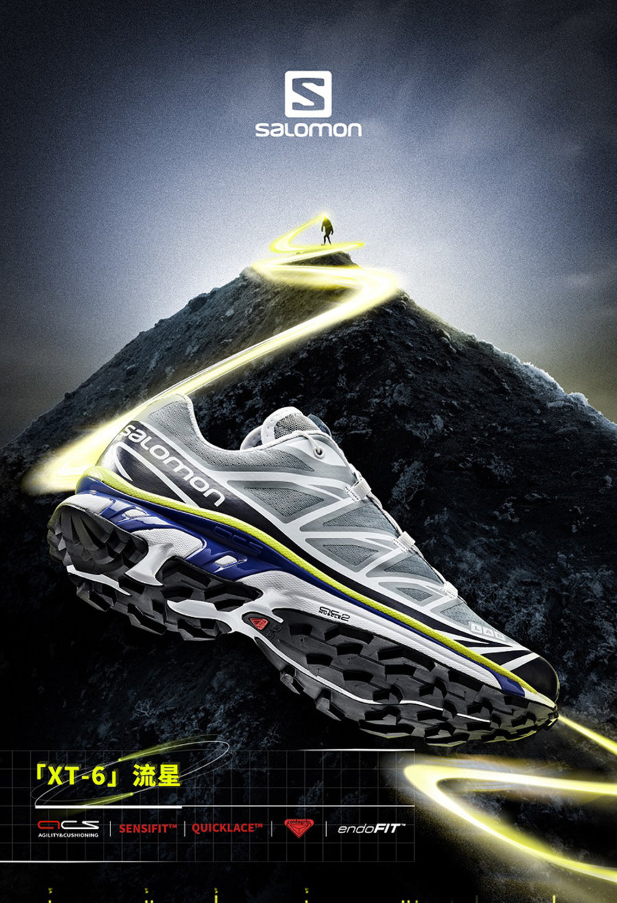 在本月初上海 INNERSECT 潮流展上率先曝光,以越野跑者夜间头灯穿梭于自然间的夺目视觉为灵感,户外专业跑鞋 SALOMON XT-6 的全新配色「流星」终于释出确切发售信息,将于下月初正式发售。