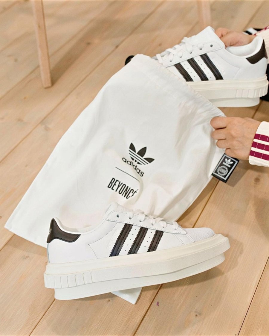 去年 adidas 再度携手 Beyoncé (碧昂丝),打造了联名 Superstar 鞋款,最大亮点莫过于保留熟悉轮廓造型的同时重新设计了鞋底,释放出让人过目难忘的时尚气质。