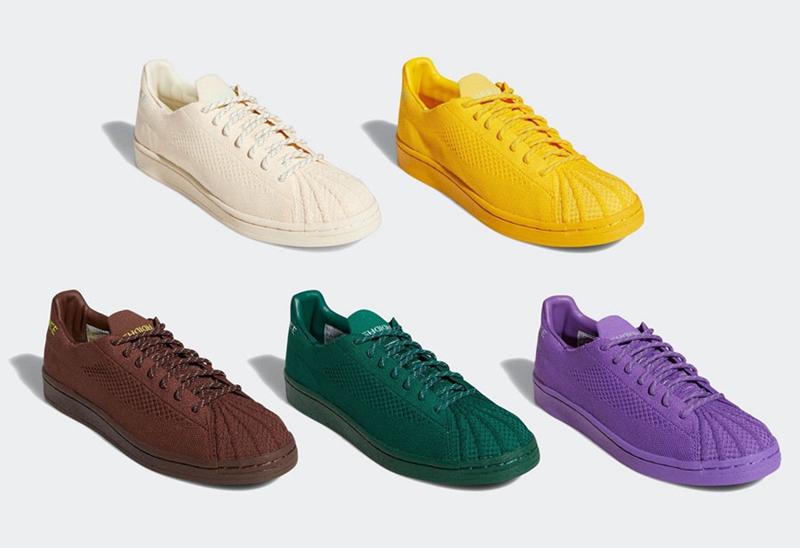 Pharrell x adidas Superstar Primeknit 采用舒适编织鞋面,贯彻菲董一贯的色彩美学。
