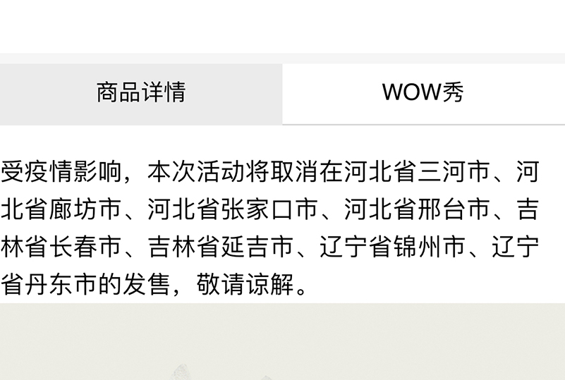 但是由于受到疫情影响,本次活动取消河北省三河市、廊坊市、张家口市、邢台市;吉林省长春市、延吉市、锦州市、丹东市的发售。